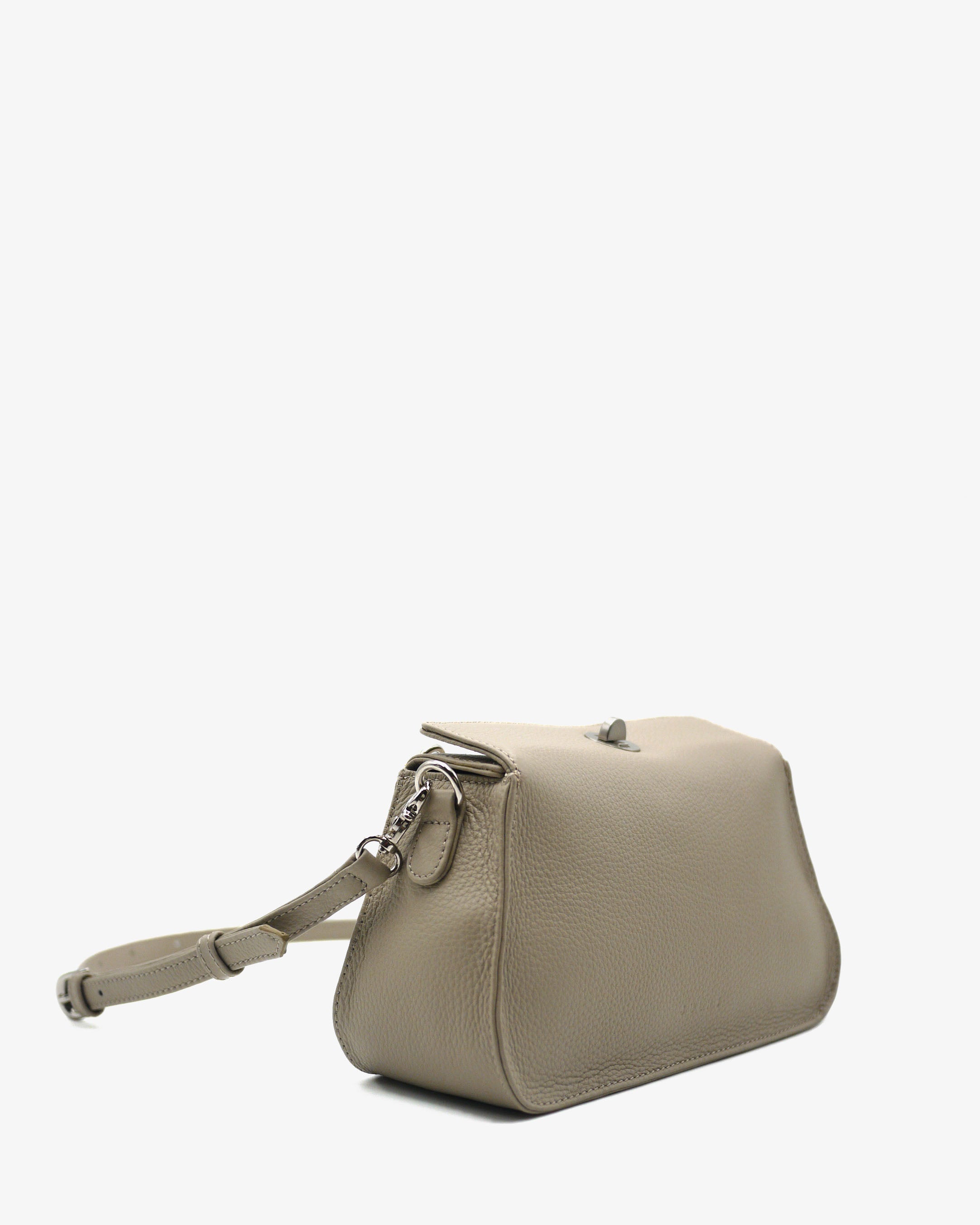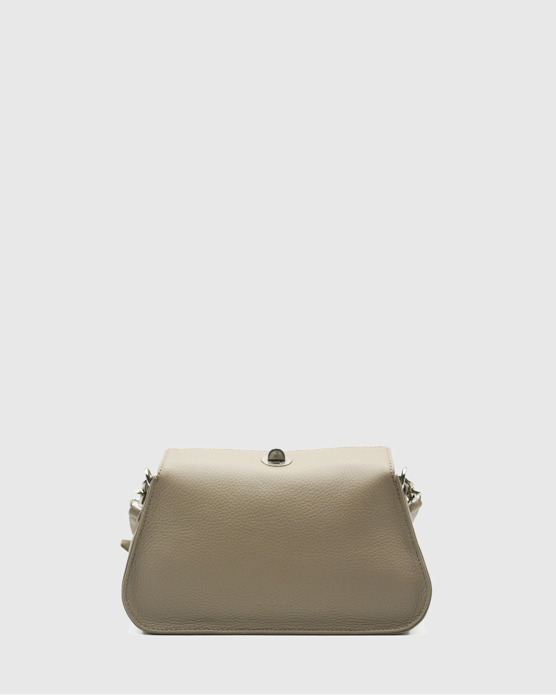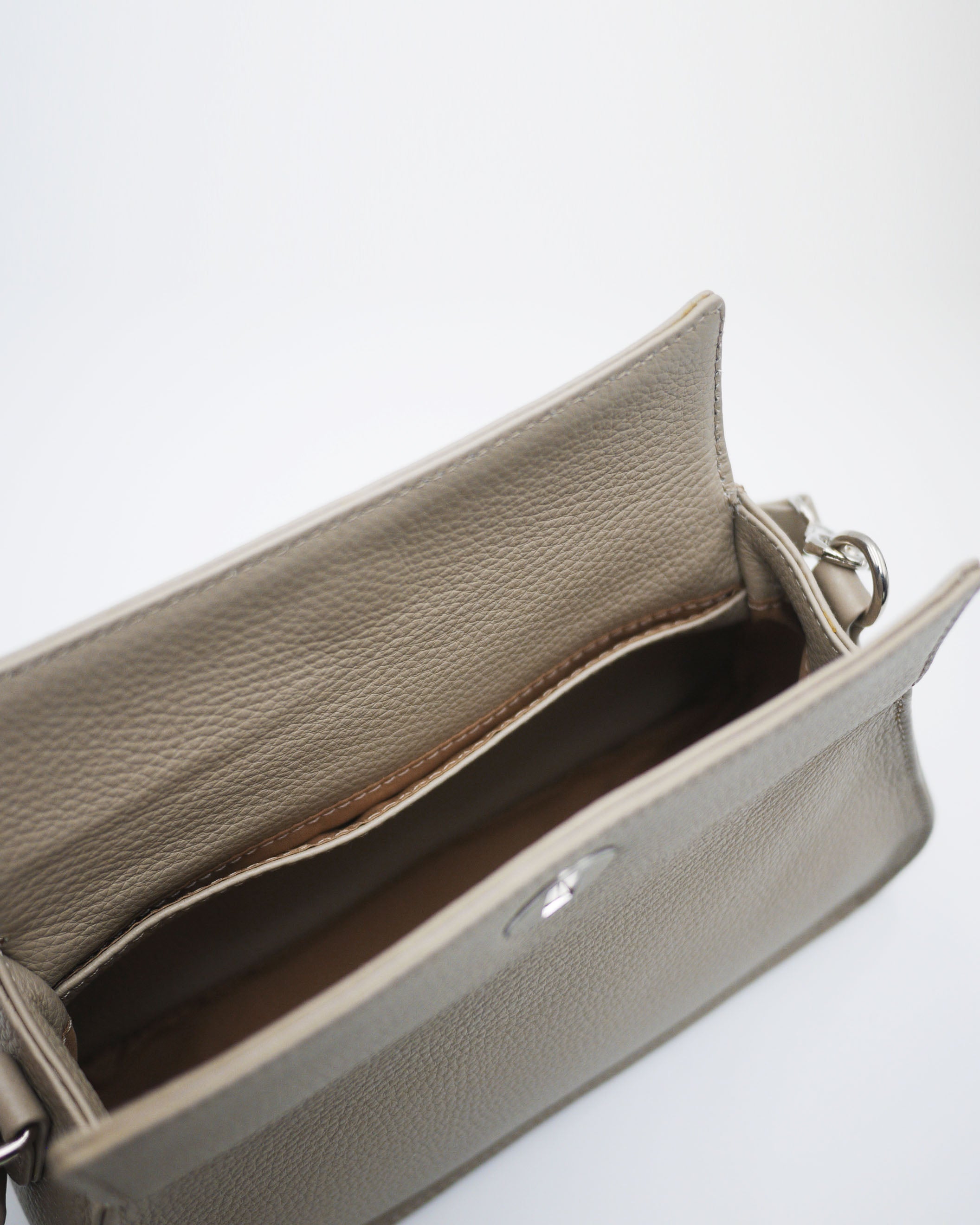 The Treasure is a sleek, trapezoid-shaped bag designed to carry your essentials like a SPF lip balm, a mini first aid kit, your phone, and wireless earbuds. Its adjustable strap allows for easy conversion between a belt bag and an underarm shoulder bag, giving you the flexibility to be hands-free. The flap top opens to reveal a structured single compartment with an additional pocket for extra storage and secures with a logo-engraved metal turnlock. The back exterior features a convenient card slot that fits transit passes from most countries.